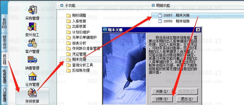 单击主控台[供应链]-[存货核算]-[期末处理]-[期末关账]-[对账]。