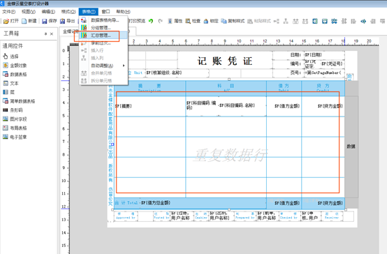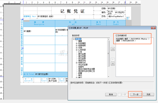凭证套打如何实现按金蝶软件的额科目及摘要汇总打印?