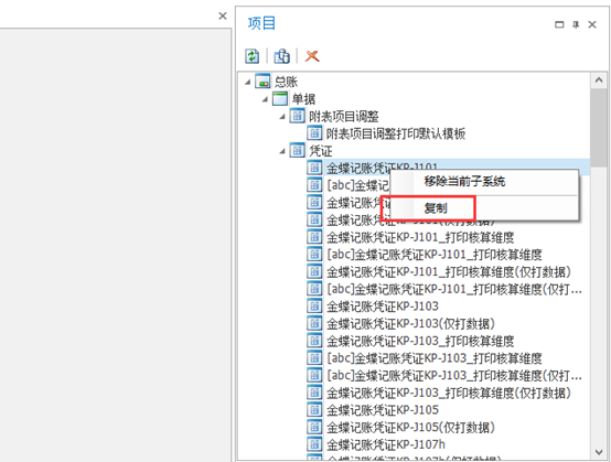 步骤一:打开【BOS套打设计器】并复制一个凭证套打模板。