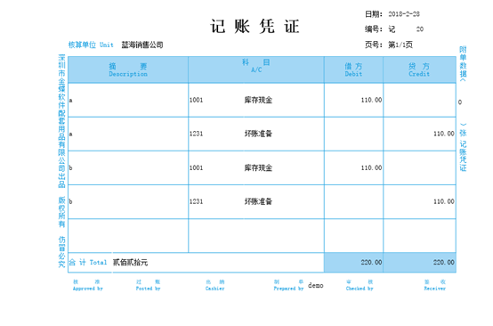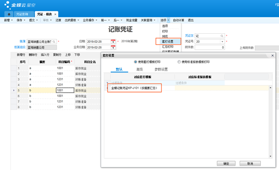 步骤四:在凭证的套打设置中选择该汇总打印的套打模板后再打印,相同科目及摘要的分录行便会合并显示。