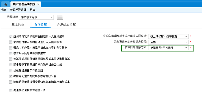 系统路径:存货核算-成本管理系统参数-存货核算