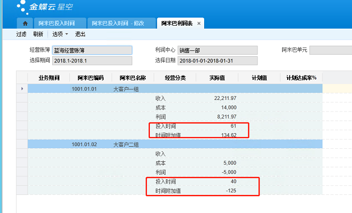 3.阿米巴投入时间目前只为报表取数用途。如果不录入如上图投入时间为0,时间附加值也是0.