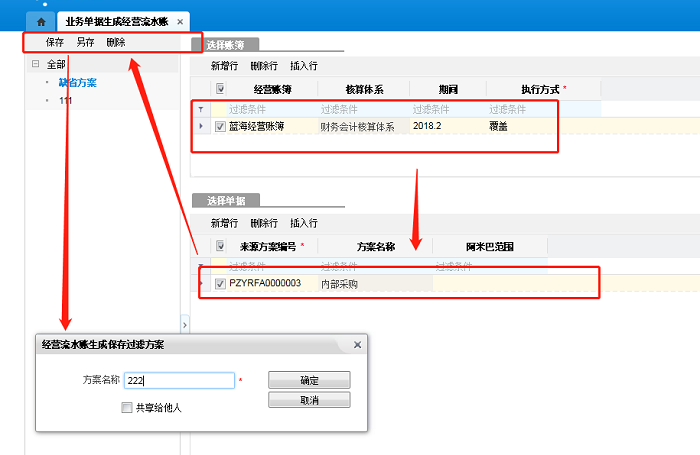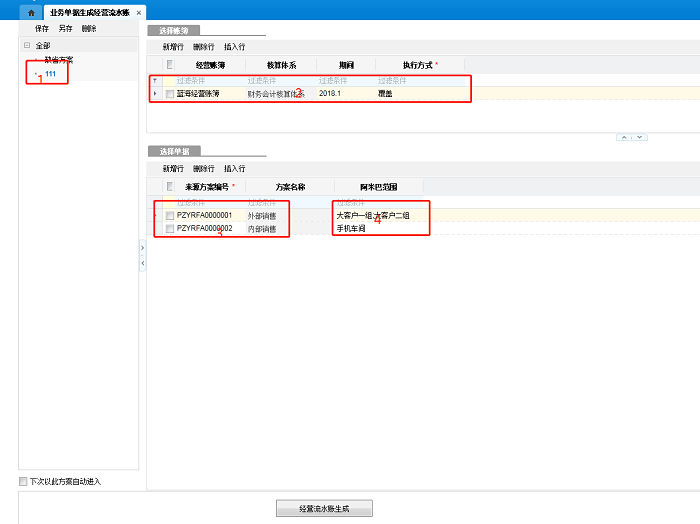 选择好经营账簿、设置好生成方式及期间。 还有那些方案,那些阿米巴范围。支持多个账簿同时在一个方案。