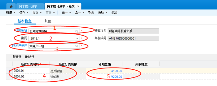 注:阿米巴计划单是以期间为单位,并不支持按日期设置计划,因此如果自定义日期内的阿米巴计划单,是寻找这个自定义日期内所有期间的阿米巴计划值汇总。