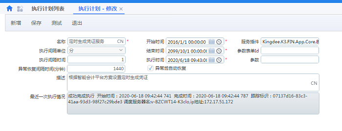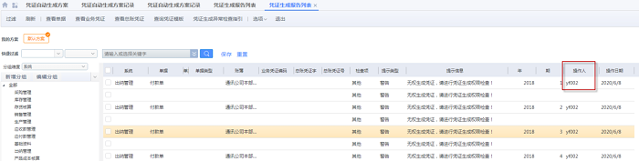 定时自动生成凭证操作人为定时生成凭证服务计划的操作人,后台自动执行操作人是管理员(administrator)有全部权限,如果手工执行定时生成凭证计划则操作人为当前登录的用户。