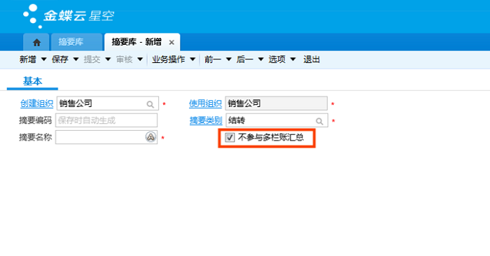 1、凭证摘要取自摘要库,该摘要库勾选了【不参与多栏账汇总】