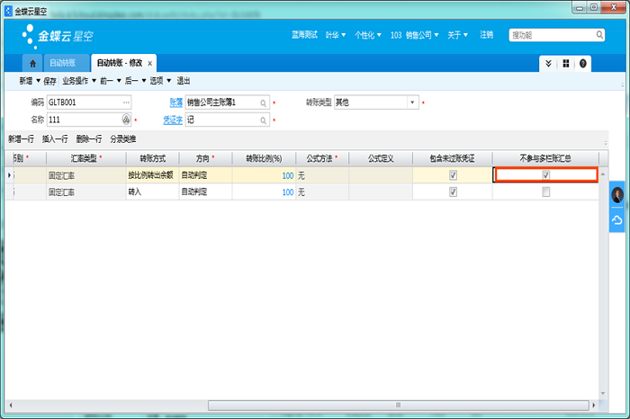 2、凭证为自动转账生成,且自动转账方案中勾选了【不参与多栏账汇总】