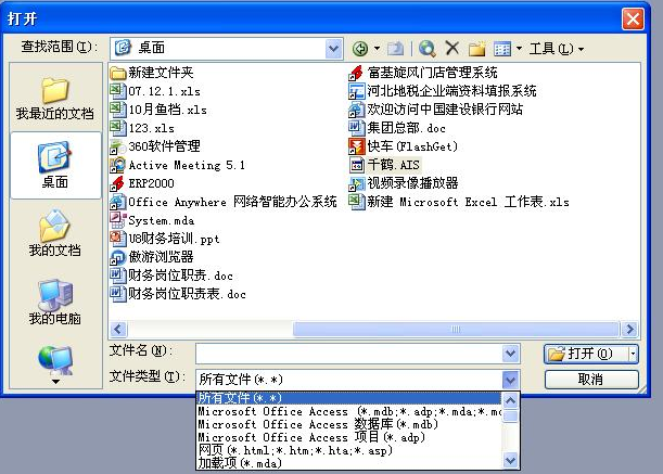 第三步、在打开的界面找到帐套实体如:千鹤,文件类型选择:所有文件,