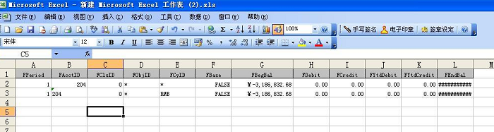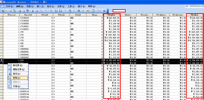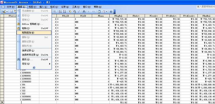 注意:凡是没有余额的科目在Glbal表上是不显示的,如果修改涉及到之前余额为零的科目先复制下边表中的记录,再按第八步和第九步增加上新科目就可以了!
