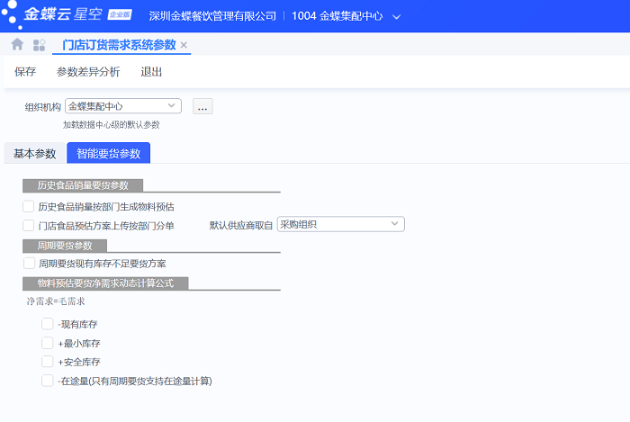 1.参数介绍:智能订货,生成物料预估后,计算出原始需求,可根据动态公式,计算得出净需求