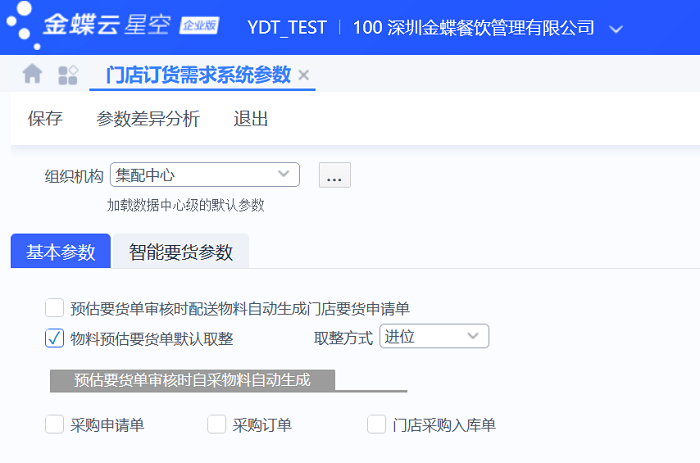 1. 参数介绍:当物料预估要货单审核时,配送类(统配+直拨)的物料,自动生成门店要货申请单。