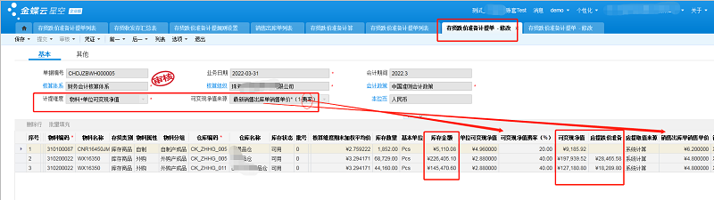 5.2 如果按照物料+单位可变现净值计提,则计算结果如下图: