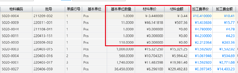 委外做的采购退料单取不到相应的材料成本,一些取的是负数,一些是0,一些是正常材料金额
