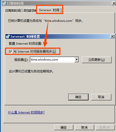 建议设置服务器的操作系统时间与Internet时间服务器同步,或根据正确的北京时间手工调整操作系统时间,且时间差在1分钟以内。