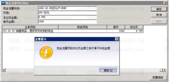 12、 问题描述:不同币别做现金流量指定时,提示本位币金额之和不等于科目金额。