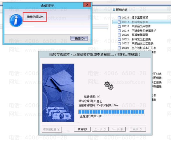 14、 问题描述:材料出库核算时提示“堆栈空间溢出”