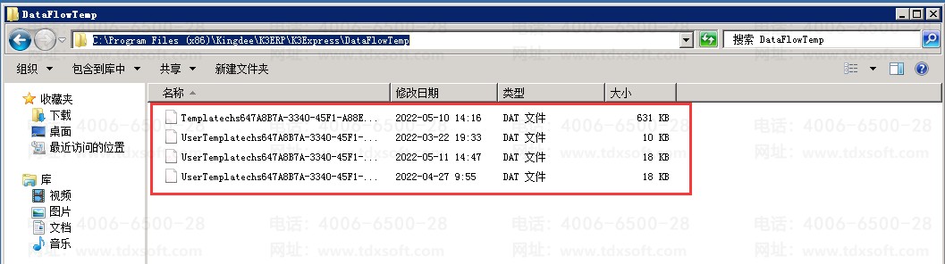 5、接下来,打开ERP安装路径,此处为:\Program Files (x86)\Kingdee\K3ERP\K3Express\DataFlowTemp文件夹,清除此文件夹内所有文件;