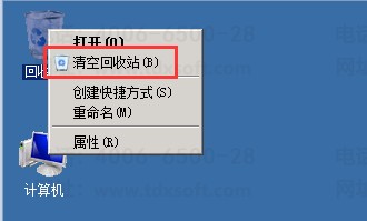 6、右击服务器电脑桌面【回收站】图标,从弹出的快捷菜单中点击【清空回收站】按钮;