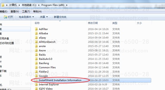 2.打开C:\ProgramFiles (x86)目录找到InstallShield Installation Information文件夹,删除,再操作以上卸载指导中的3、4步骤即可
