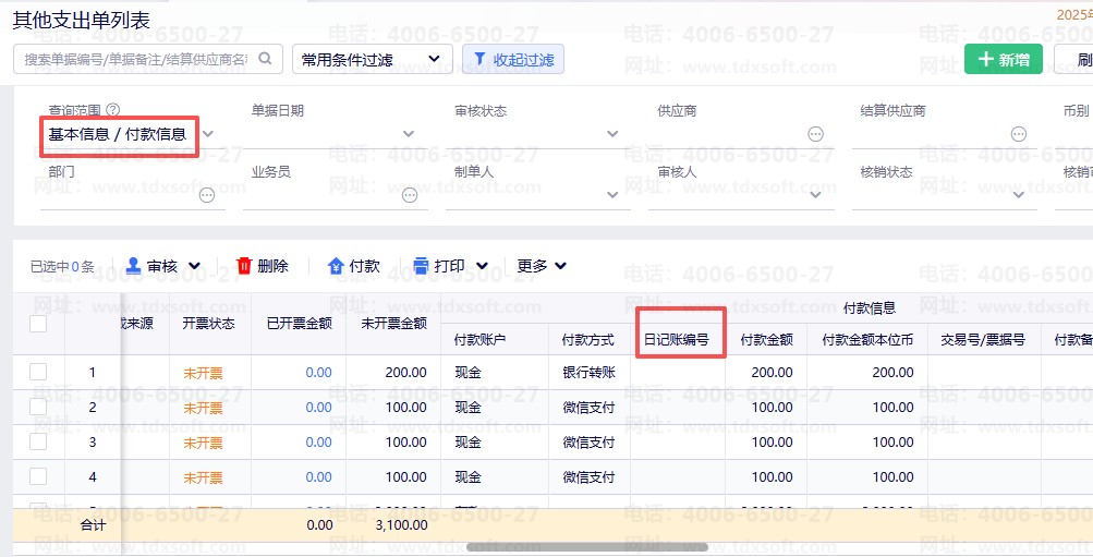 金蝶云星辰其他支出单列表怎么不显示日记账编号?单据上面都有显示日记账编号