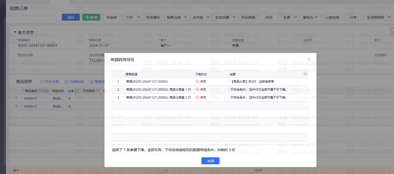 销售订单直接下推发票,