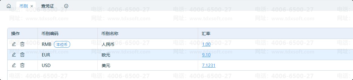 系统启用成功后,可依据业务实际情况新增其他币别及对应汇率。