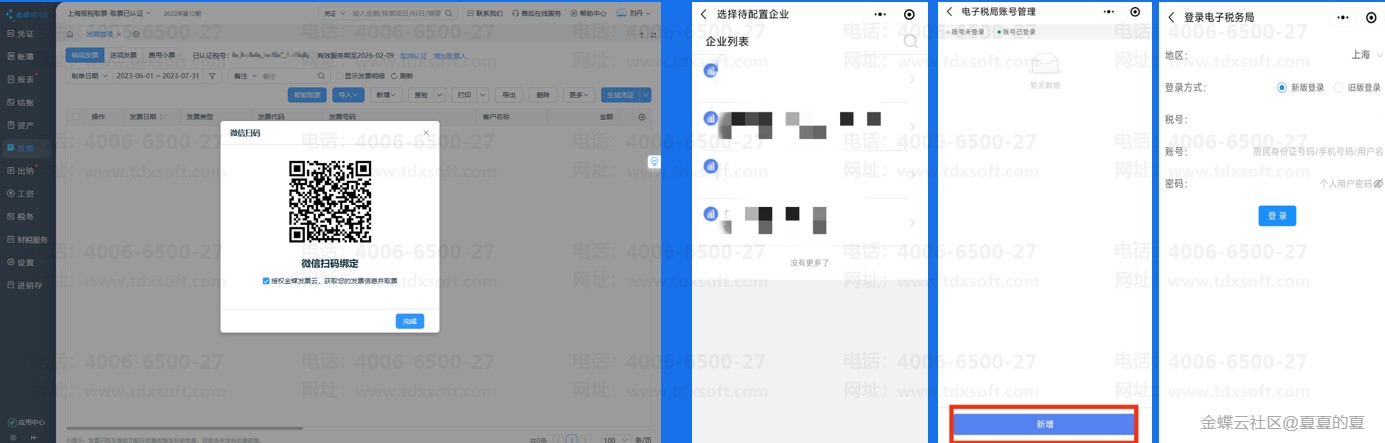 c、输入税号、账号、密码进行登录绑定