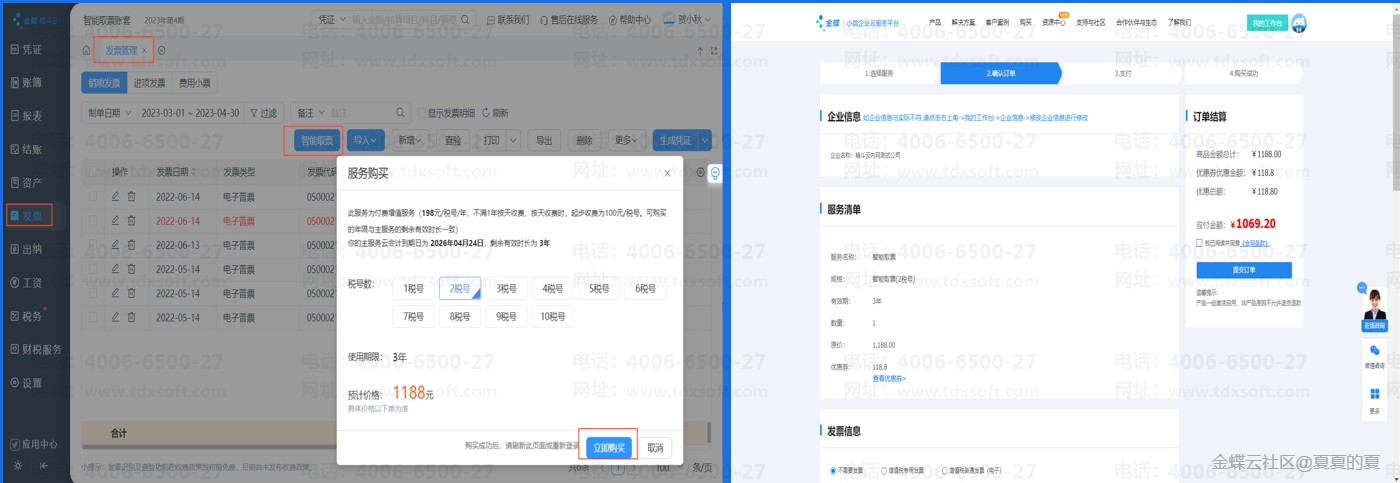 购买路径:云会计--发票--发票管理---智能取票。按主服务(云会计)剩余时长购买。