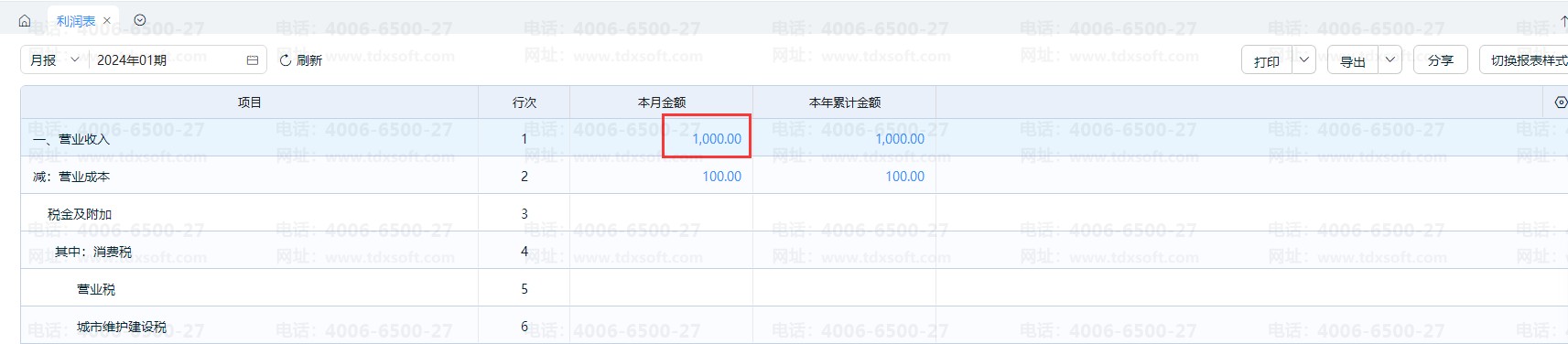 点击报表数据可以联查项目总账和明细账数据,如和报表存在差异,详细可以点击:利润表数据不对,与总账,明细账,科目余额表对不上,应该如何处理?