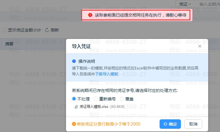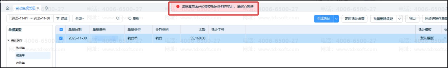云会计系统操作时提示“您前面已经提交相同任务在执行请稍后重试”如何处理