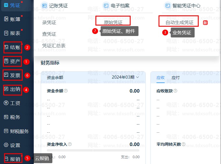 ④出纳、⑤云报销、⑥发票凭证、⑦电子档案生成的凭证允许修改和删除;为非必录项,可手工录入或是系统生成,二选一。