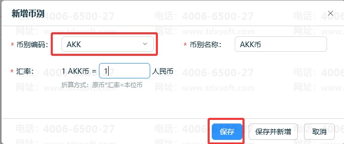 ②系统预设常用币别编码和名称,可直接下拉选择币别编码,自动带出币别名称。