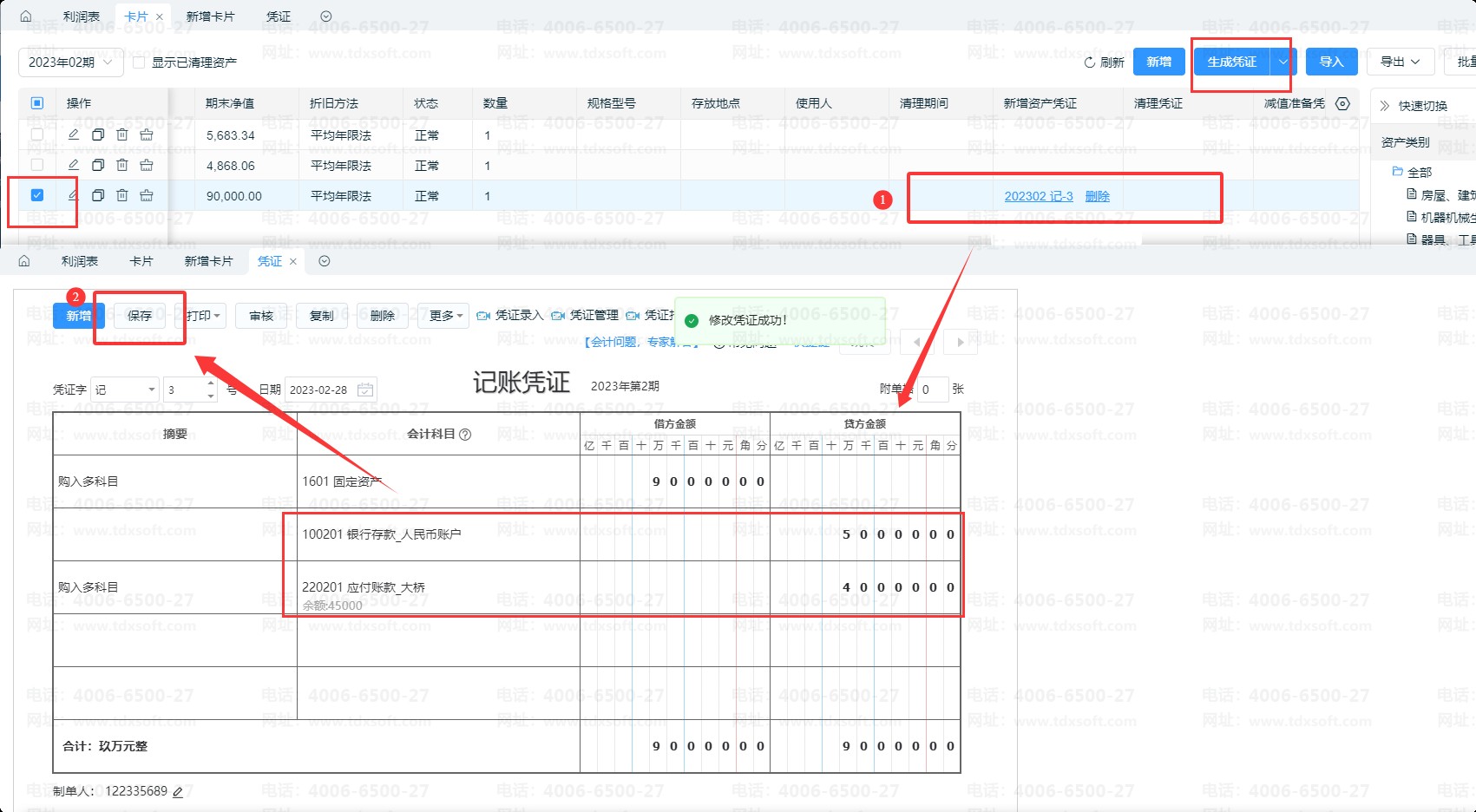 ①若是新购买的固定资产,填写后,生成资产购入凭证时,分录为: