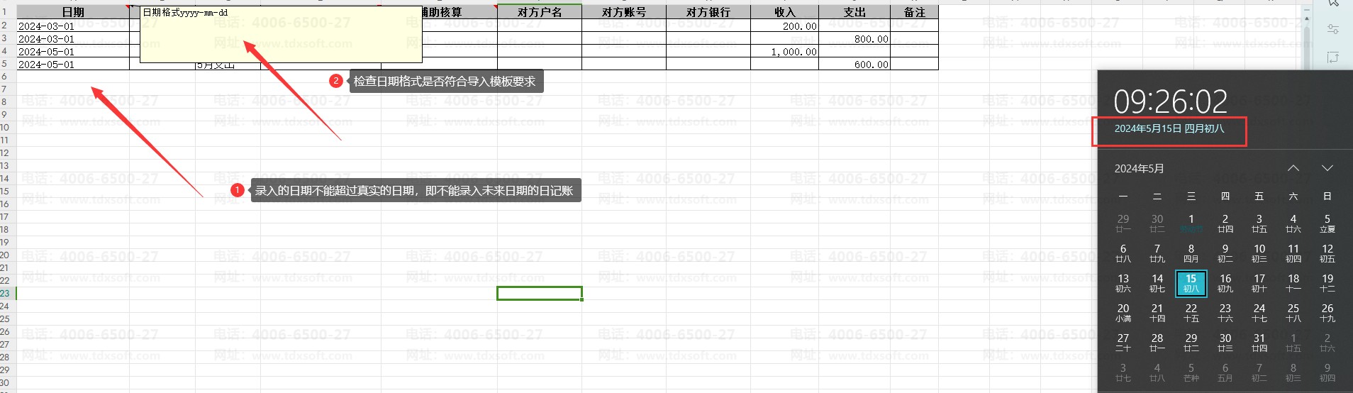 导入日记账提示:导入失败!日期最大不能超过今天!
