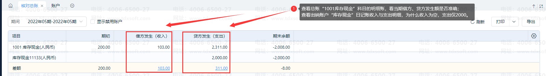 3、若是借方发生和贷方发生有差额,一般是查询的此账户的日记账流水,与对应的总账会计科目明细账,(收入对应借方发生、支出对应贷方发生)。