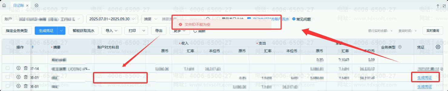 日记账生成凭证时提示“文件ID不能为空”