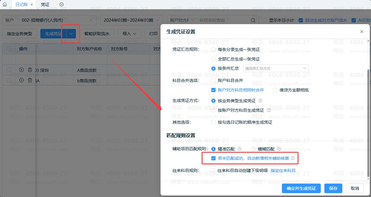 4、日记账按智能凭证模板生成凭证时,无法带出辅助核算明细。