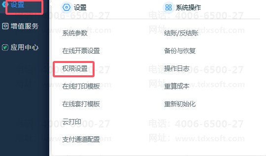 首先使用管理员登录,然后在【设置】-【权限设置】