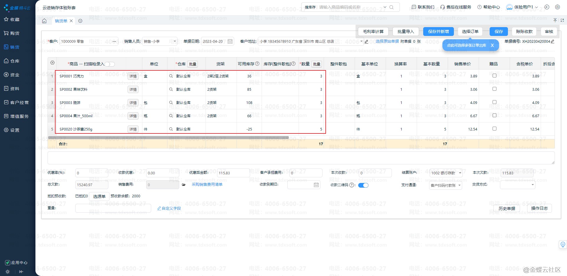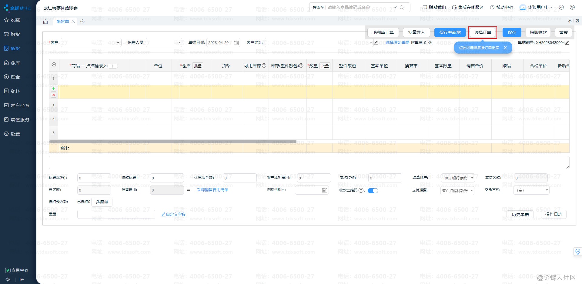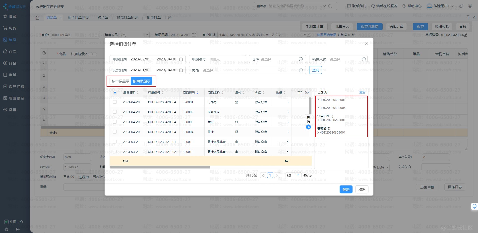 1) 销货单增加选择订单功能,支持选择多单合并出库或部分商品出库