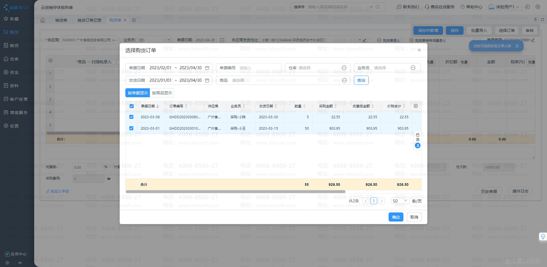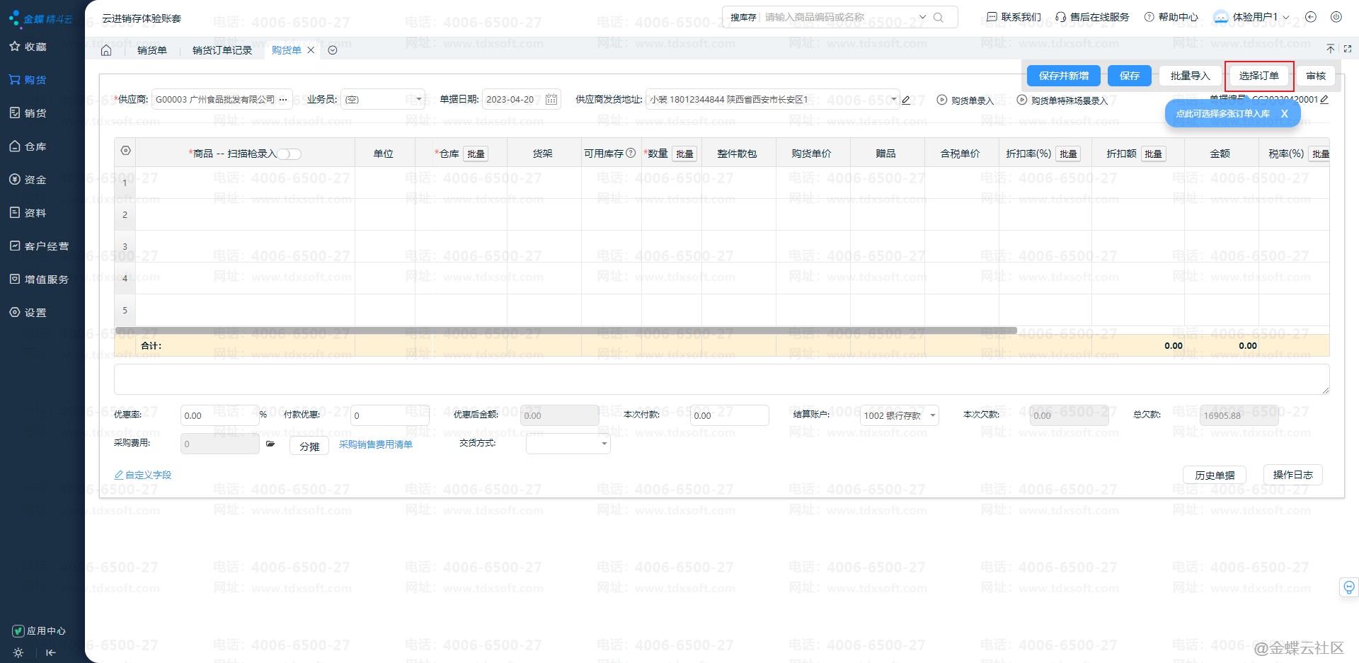 1)购货单增加选择订单功能,支持选择多单合并入库或者部分商品入库