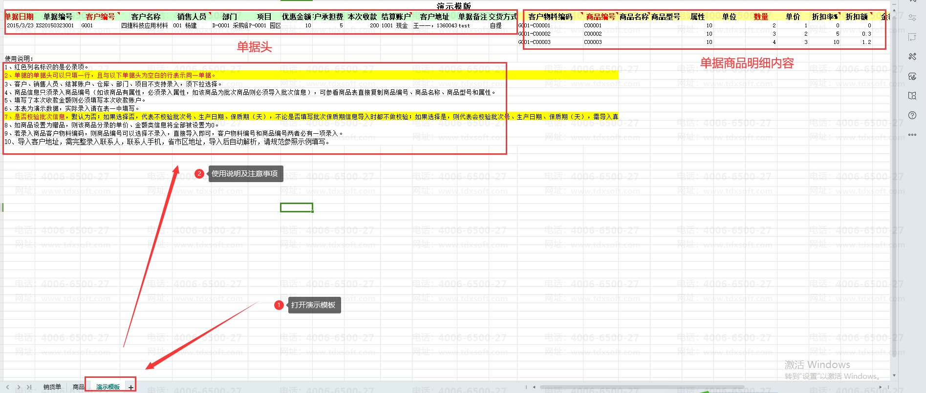 ⑥录入前可以先参考演示模板。