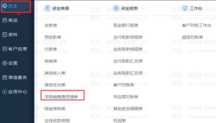 2、打开采购销售费用清单,查看采购费用及销售费用明细: