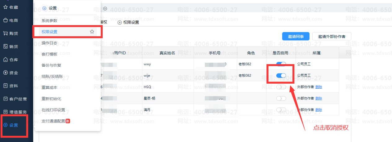 进销存取消授权: