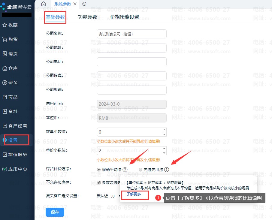 可在打开【设置】-【系统参数】-【基础参数】-【存货计价方式】点击了解更多,查看具体的计算说明。
