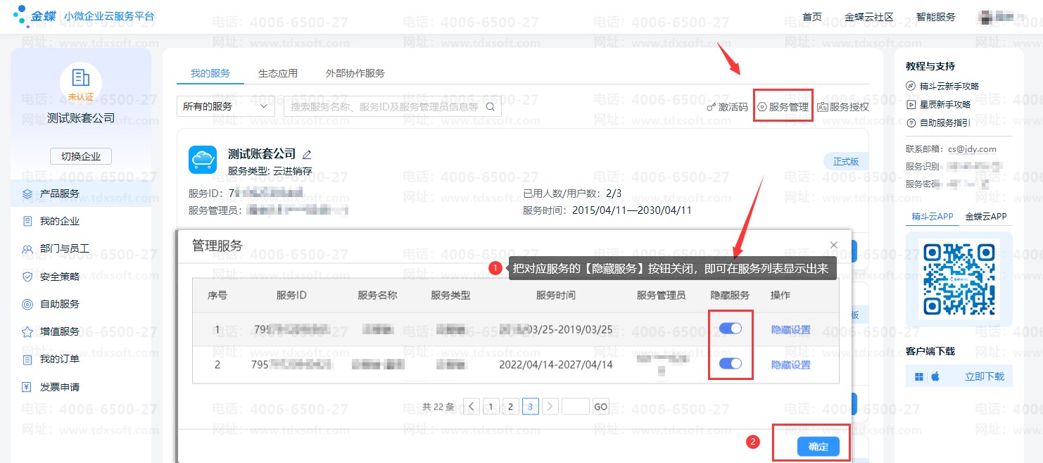 详细操作可以了解:产品服务/账套可以隐藏吗?如何操作?