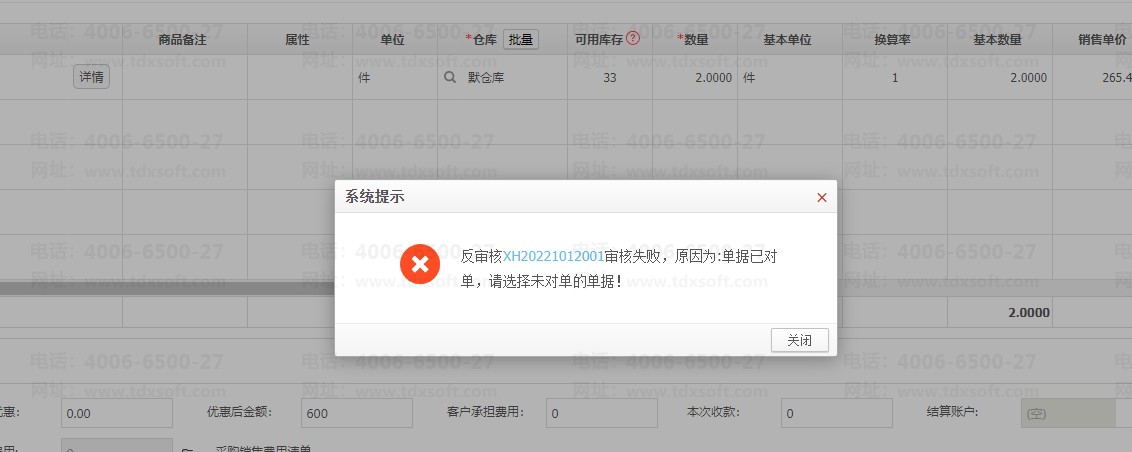 需要撤销对单后才可进行修改调整,如图: