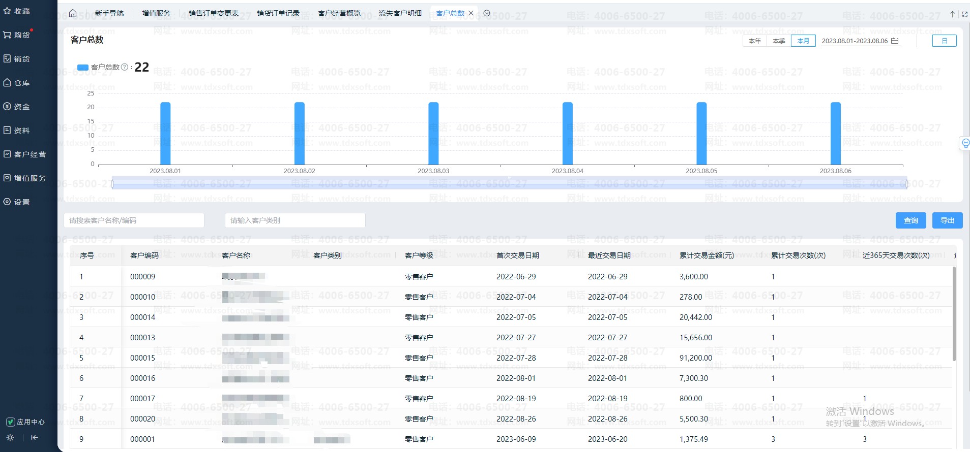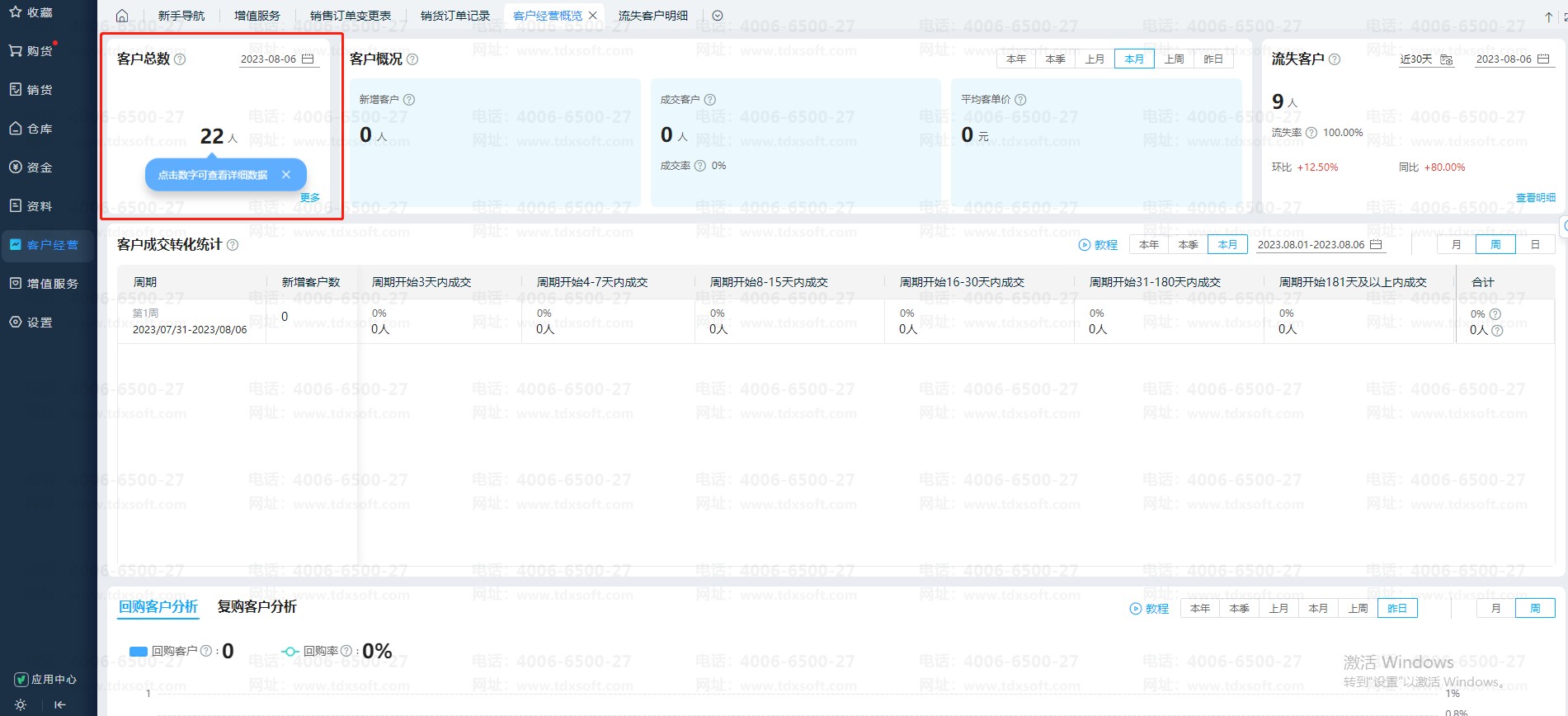云进销存客户经营概览的客户总数,如何统计