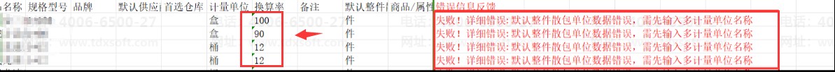 导入商品失败,提示“默认整件散包单位数据错误,需先输入多计量单位名称”