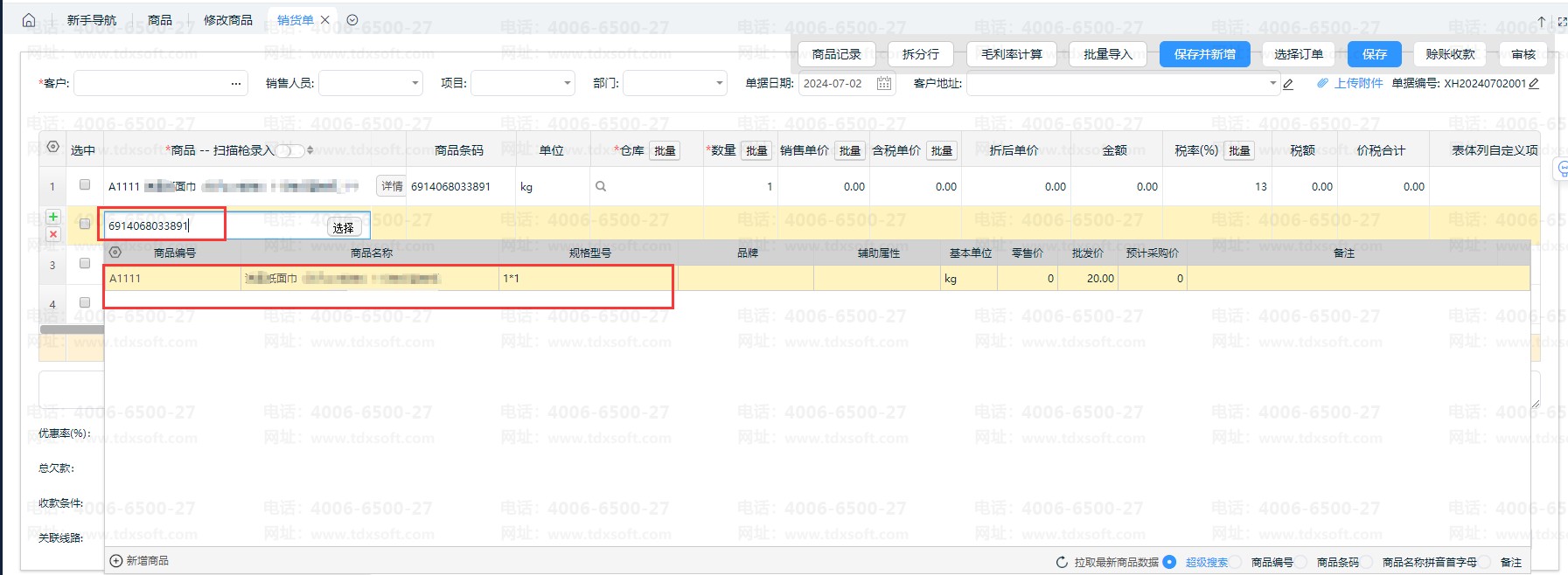 2、新增商品或是修改商品时,把【商品条码】信息录入。