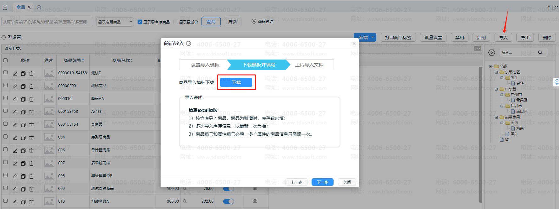 3、请先下载导入模板,然后按照模板格式并填写,再执行导入。